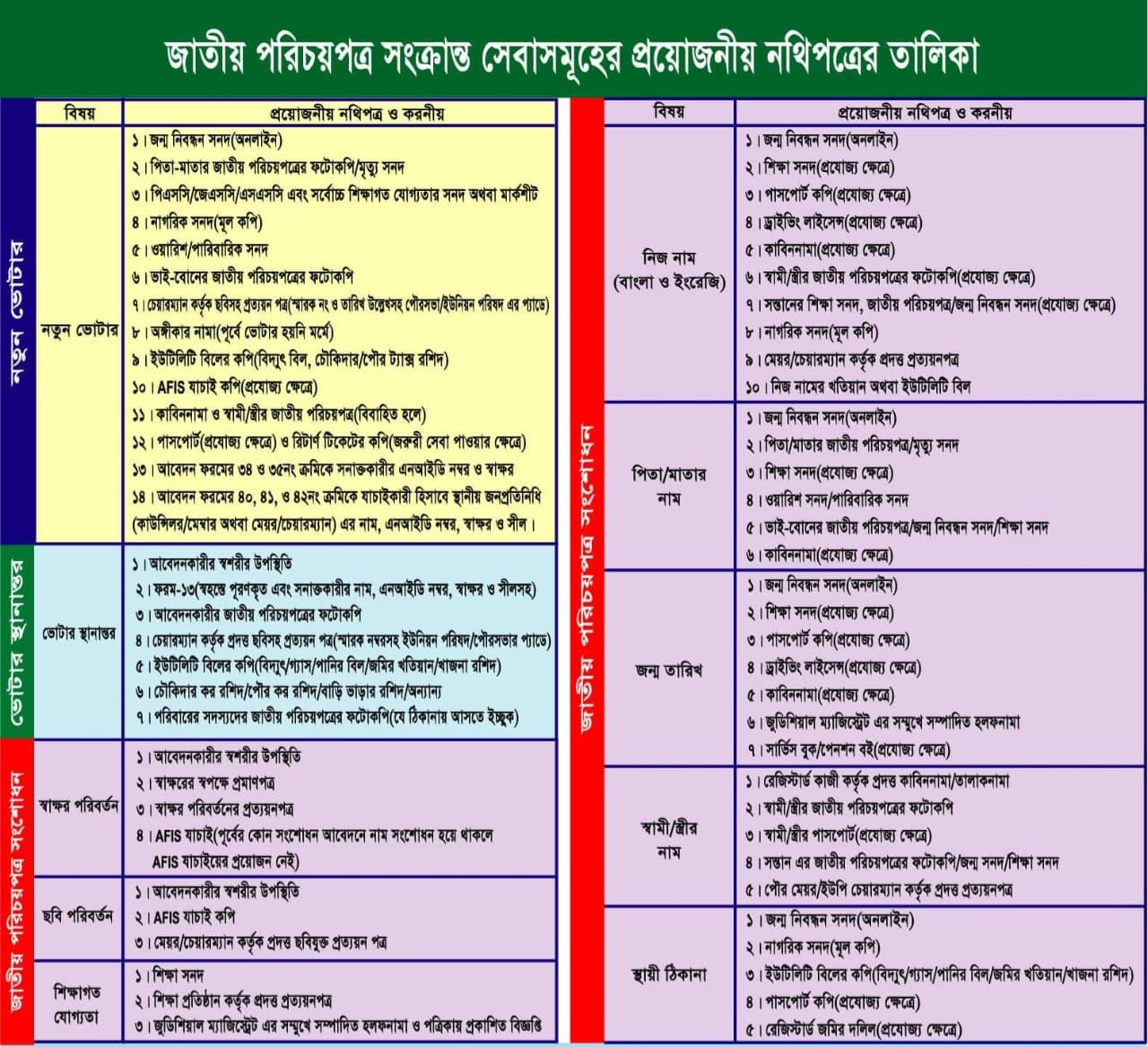 | ০১। | ছবিসহ ভোটার তালিকা প্রণয়ন ও হালনাগাদকরণ | নির্বাচন কমিশন বাংলাদেশ কর্তৃক নির্ধারিত সময়ে বাড়ি বাড়ি গিয়ে তথ্যসংগ্রহকারীর মাধ্যমে তথ্য সংগ্রহ করে নির্ধারিত তারিখ ও সময়ে নির্ধারিত কেন্দ্রে নিবন্ধন কার্যক্রম। | উপজেলা নির্বাচন অফিসার | উপজেলা নির্বাচন অফিসারের কার্যালয় |